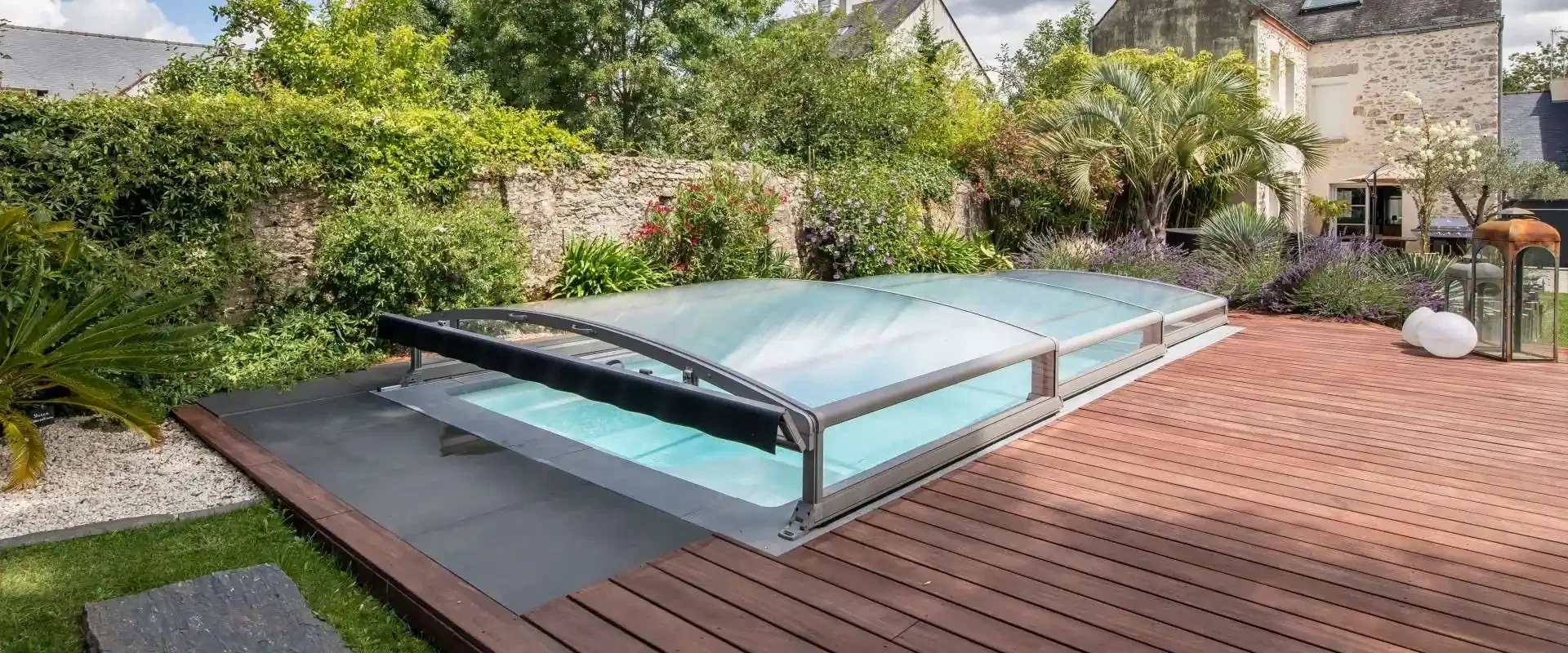 🤩 L'esthétique. Si la dimension esthétique est importante et que vous souhaitez que l' équipement qui couvre votre piscine ne fasse pas tache dans votre jardin, optez plutôt pour un abri de piscine en bois ou en acier, ou un volet roulant immergé.